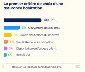 Dans un contexte d’inflation immanquablement marqué par une baisse du pouvoir d’achat, les Français sont nombreux à remettre en question les dépenses contraintes mais récurrentes du quotidien. Ainsi, lorsqu’il s’agit de choisir une assurance habitation, près de 48% des Français considèrent le prix comme le critère le plus important.