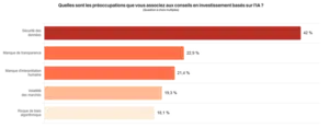 La croissante intégration de l’intelligence artificielle comme outil d’investissement suscite cependant des interrogations sur les risques qui peuvent en résulter. En effet, à la question, « Quelles sont les préoccupations que vous associez aux conseils en investissement basés sur l’IA ? », les sondés répondent :