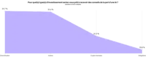 Dans cette partie, les réponses prises en compte concernent uniquement les sondés qui ont exprimé leur souhait de recevoir des conseils d’investissement de la part d’une IA. Elles montrent que :